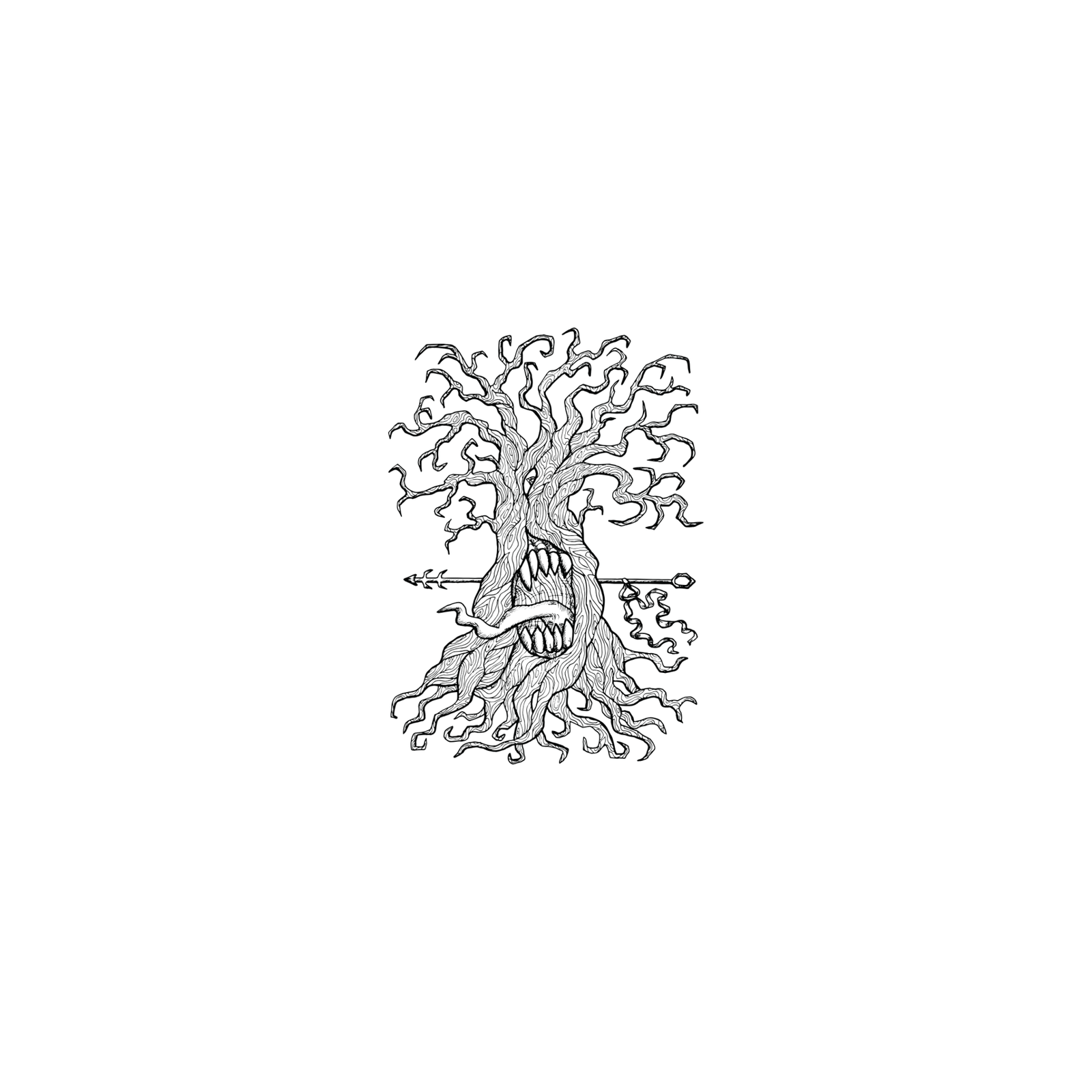 Un striking and unique piece, the Anthropomorphic Tree Temporary Tattoo is designed for those who appreciate art that tells a story. This temporary tattoo showcases a mesmerizing anthropomorphic tree, characterized by a swirling and chaotic trunk and branches that create an enchanting visual experience. With a face that features piercing eyes and a wide mouth adorned with sharp teeth, this tattoo exudes a sense of mystery and intrigue. The partially open mouth, revealing a protruding tongue, adds to its captivating and slightly menacing expression, making it an excellent choice for those who want to stand out.