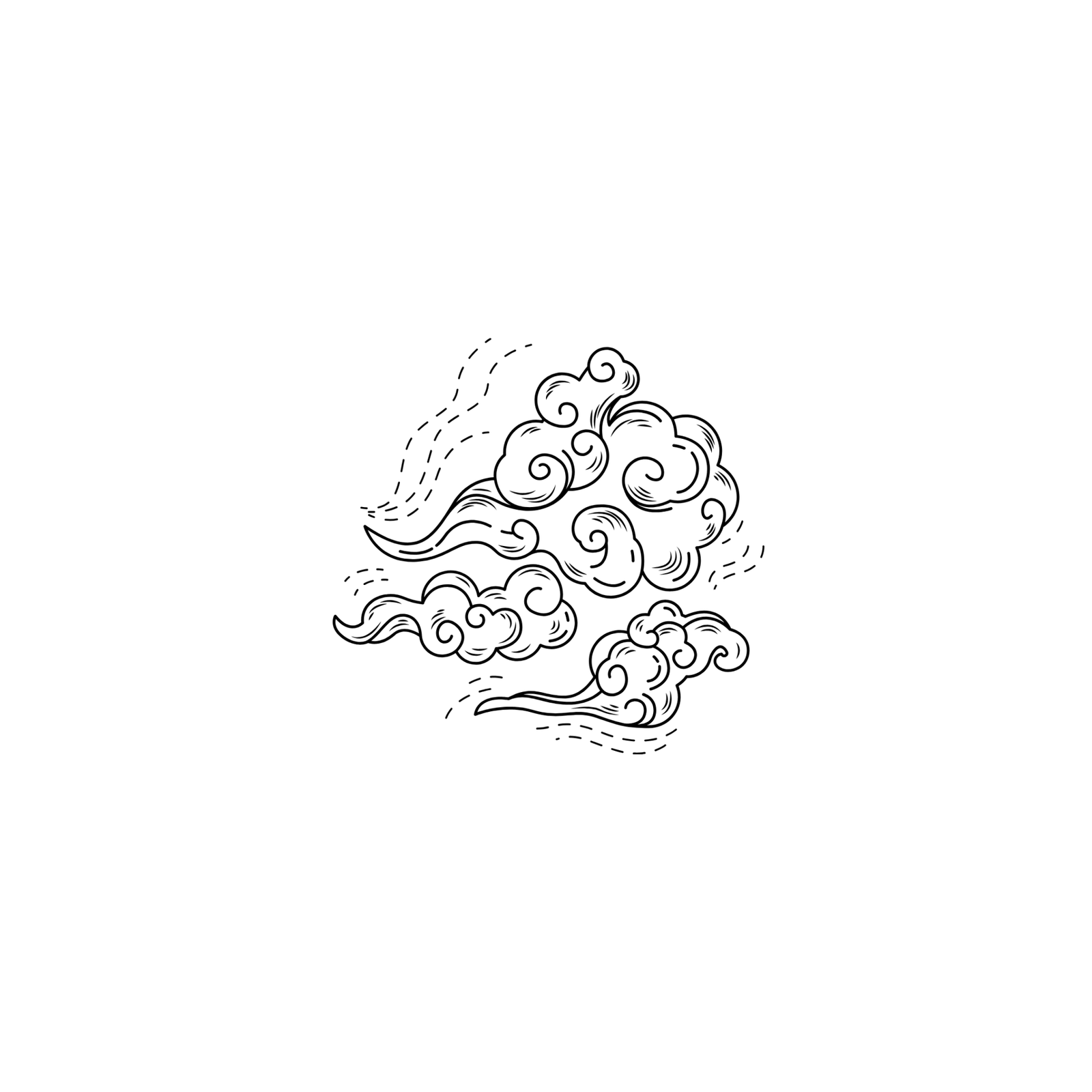 - Design: An assortment of stylized clouds with black outlines and intricate details.