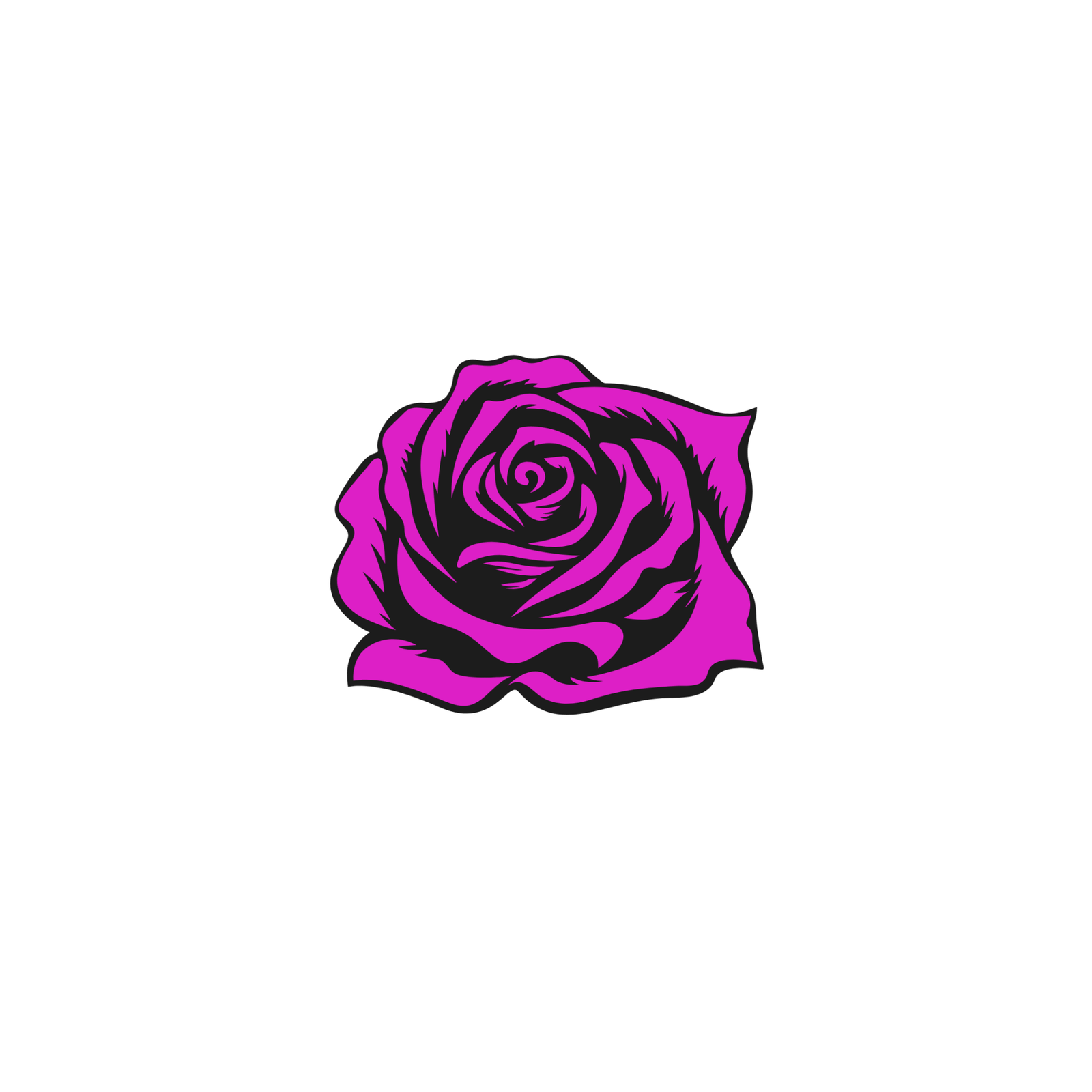 - Design: A stylized rose with vibrant pink petals and bold black contours.