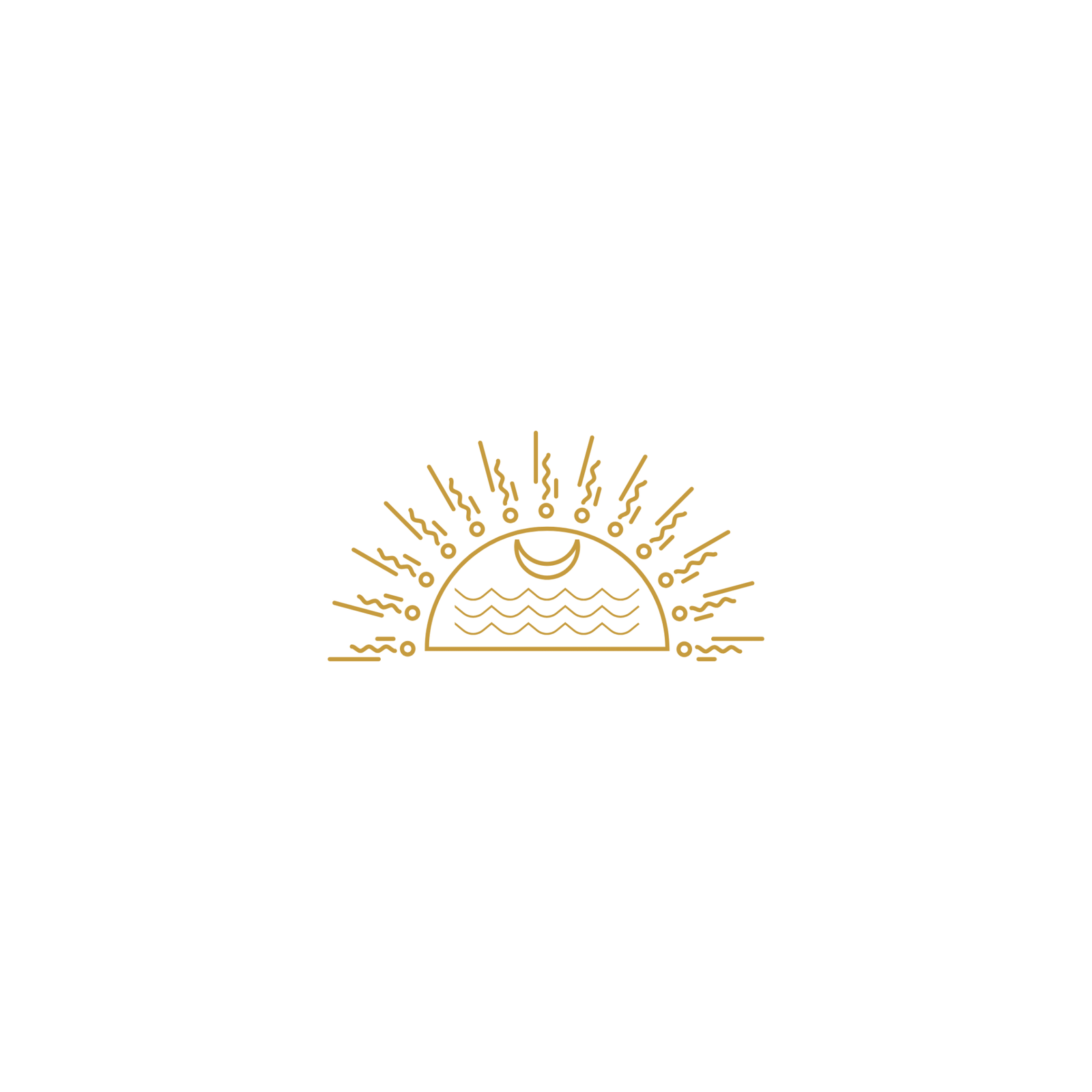 • Design: A stylized sun rising above the sea, featuring golden lines.