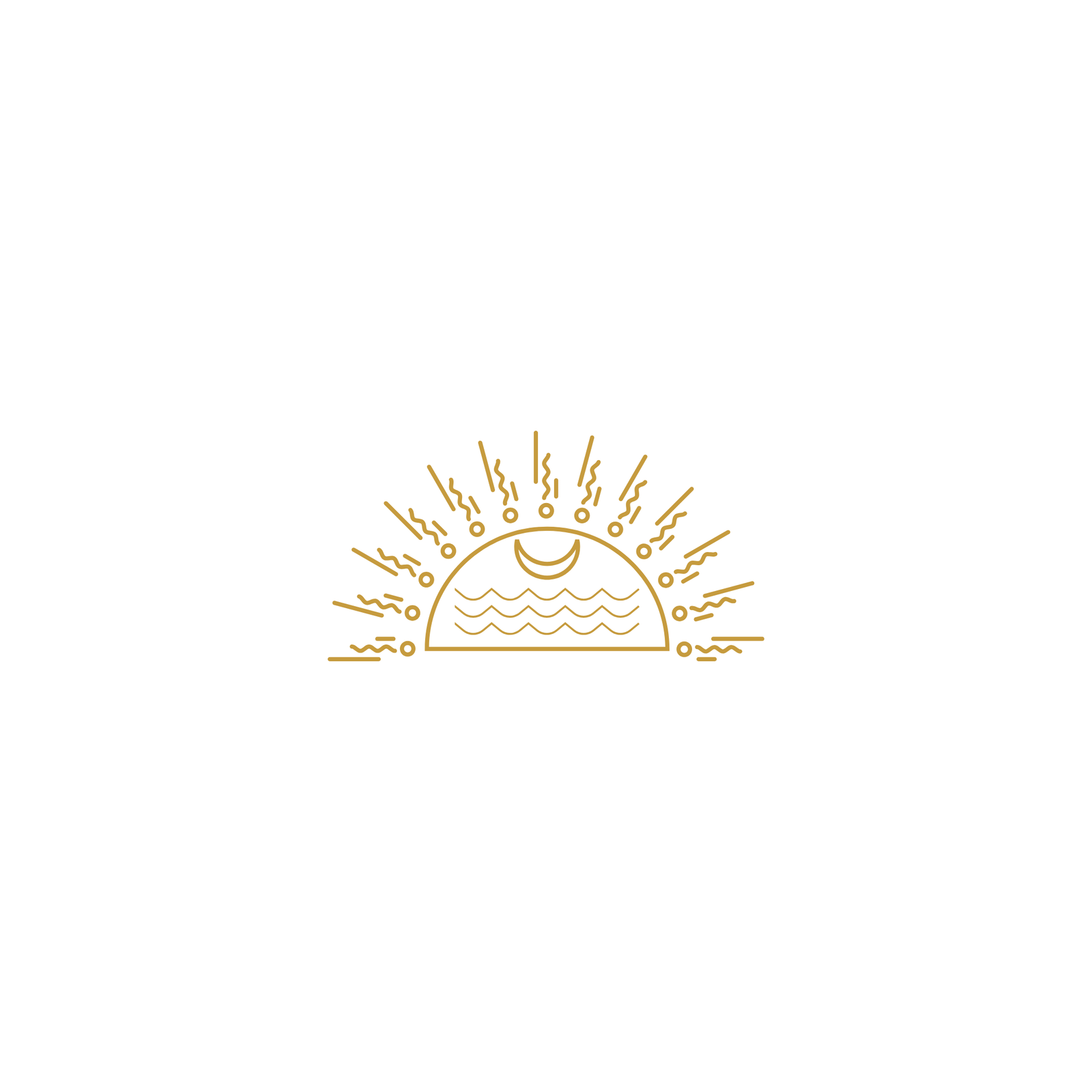 • Design: A stylized sun rising above the sea, featuring golden lines.