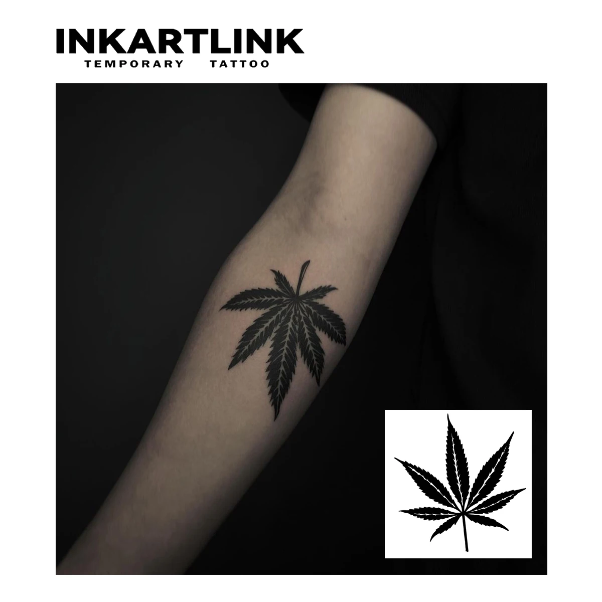 - Design : Ce tatouage temporaire représente une feuille de cannabis noire, détaillée et réaliste. Il est idéal pour ceux qui souhaitent afficher un design audacieux et symbolique.