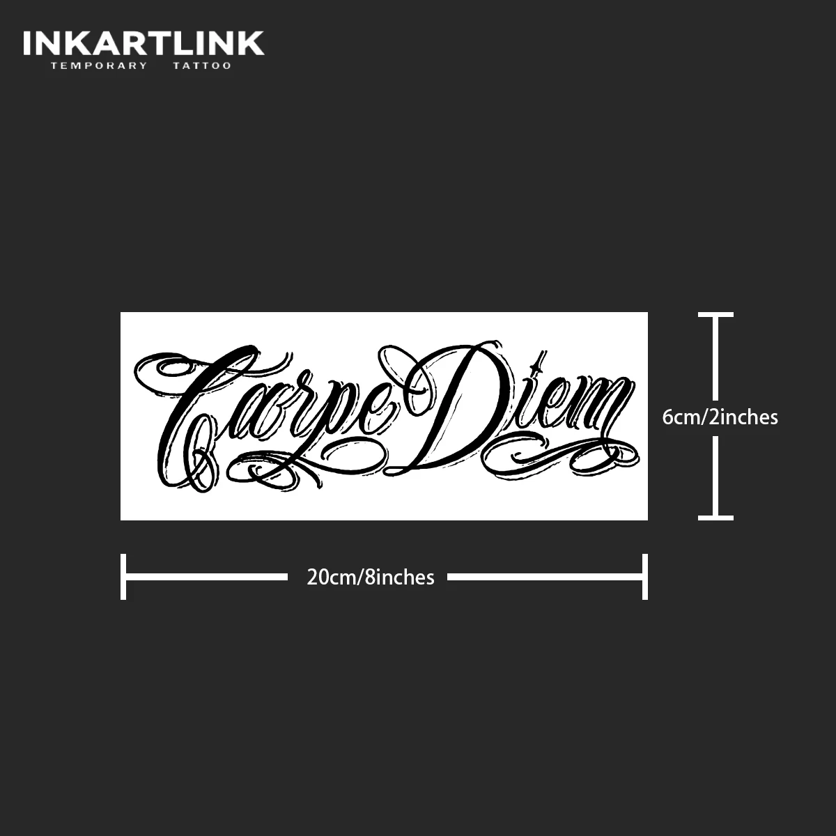Le tatouage temporaire "Carpe Diem" est une belle manière de porter un message puissant et inspirant sur votre peau. Le design élégant et cursif de cette phrase latine, signifiant "Cueille le jour", vous rappelle de vivre pleinement chaque moment.